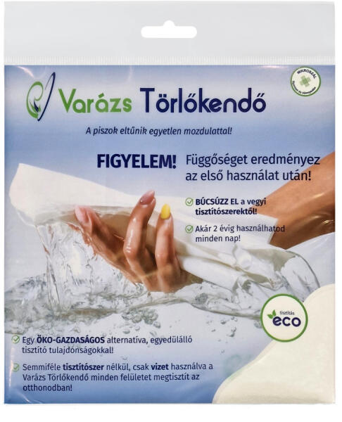 Az egyedülálló tisztítási tulajdonságokkal rendelkező mikroszálas bűvös törlőkendő valóban varázslatos! Méret: 40 x 40 cm Az egyedülálló tisztítási tulajdonságokkal rendelkező mikroszálas bűvös törlőkendő valóban varázslatos! A 40 x 40 cm-es méretével és csak vizet használva; mikroszálas törlőkendő bármilyen felületet megtisztít: eltávolítva a port, az ujjlenyomatokat, a zsírt vagy a szappanfoltokat. Használati útmutató: A felületek tisztításához a törlőkendőt vízbe kell tenni, mosószer használata nélkül. Ezután jól összeszorítva a törlőkendőt ki kell szorítani a vizet és kezdődhet a felület fényesítse. Nem hagy nyomot vagy odaszáradt maradványt, Csupán vízzel tisztít és políroz! Milyen felületeken használható? Ideális ablakok és tükrök, fajansz és csempe, fából készült bútorok, háztartási gépek (laptop, TV, hűtőszekrény vagy egyéb kisebb készülékek) és érzékeny felületek tisztítására. Akár autók ablakainak és belső tereinek tisztítására is használható. Hogyan kell tisztítani? A Carpa Magica - bűvös törlőkendő - mosógépben tisztítható, mosószerrel, akár klórral is. Figyelem! A károsodás elkerülése érdekében mosás után ne használjon öblítőszert Ne szárítsa soha szárítógépben! A maximális mosási hőmérséklet 30°C . A tisztítási utasítások betartása garantálja a Carpa Magica bűvös törlőkendő hosszú távú használatát. Miért válassza a bűvös törlőkendőt? - Bármilyen zsírfoltot csak vízzel töröl és elnyel; - Ideális érzékeny felületekhez; - Nem hagy foltot, és nyomokat; - Megszabadítja a vegyi mosószerek által okozott allergiáktól; - Prémium minőség