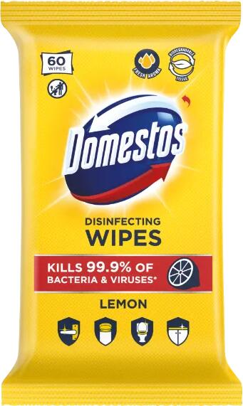 Domestos Lemon Fresh fertőtlenítő törlőkendő 60 db - shoperia
