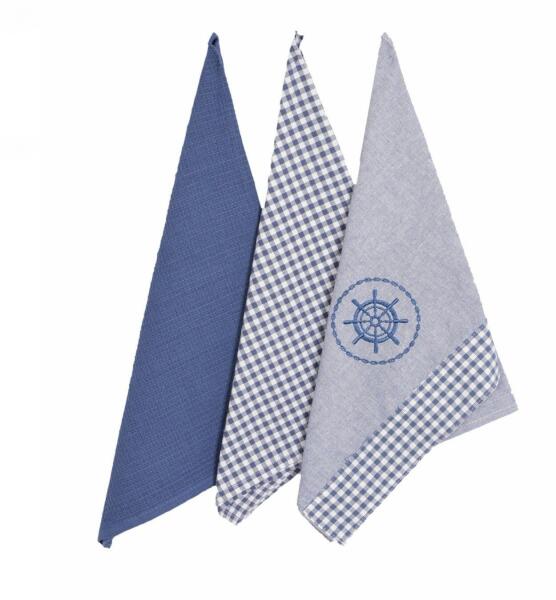 Forbyt Konyharuha Kockás és kör mintás, kék, 45×70 cm, 3 db