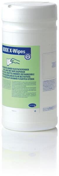 Általánosan alkalmazható törlőkendő adagolórendszer, mely Mikrobac® forteval való együttes használat esetén mosható felületek tiszító hatású fertőtlenítéséhez használható. A BODE X-Wipes több előnyös egyedi tulajdonsággal rendelkezik a felhasználó szempontjából: a törlőkendők egyszeri használatának köszönhetően magas higiénés minőséget biztosít, csökken az előkészítéshez szükséges idő, az anyagok kiváló minőségének köszönhetően pedig csökken a fertőtlenítőszer fogyasztás. A BODE X-Wipes adagoló 0,75 liter BODE fertőtlenítő- vagy tisztítószer (Mikrobac® forte, Bacillol® AF, Korsolex® extra vagy Bodedex® forte) munkaoldattal tölthető meg. A BODE X-Wipes adagolórendszert 1 órás vagy ennél rövidebb behatási idővel engedélyezett koncentrációban elkészített fertőtlenítőszerekkel való használatra dolgozták ki. A BODE X-Wipes adagolóba 0,75 liter munkaoldatot kell tölteni. A munkaoldat elkészítéséhez mindig kövesse az adott termékre vonatkozó használati és biztonsági utasításokat. Az elkészített oldat 28 napig felhasználható (Bodedex® forte esetében 7 nap).