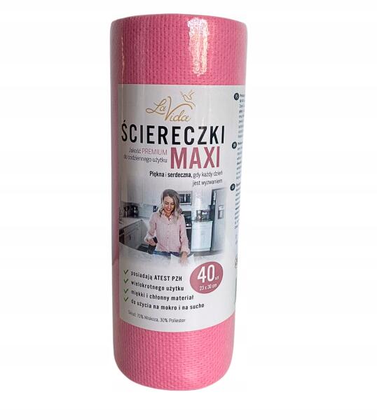 La Vida professzionális törlőkendő tekercses Maxi Premium rózsaszín 40db (5903794142336)ALLEGRO