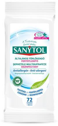 SANYTOL Fertőtlenítő törlőkendő, 36 db maxi/72 db standard, SANYTOL, antiallergén 36631348 (36631348)