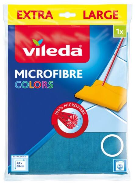 A Vileda Colors mikroszálas kendő egy extra nagy méretű, 48,5 x 60 cm-es kendő. Ezért alkalmas padlótisztításra, és nagyon kíméletes a padlófelülethez. A mikroszálak nagyon puhák és kíméletesek a felülethez, miközben könnyedén eltávolítják még a legkeményebb szennyeződéseket is. Könnyen letörölhető, nem karcol és nem hagy csíkokat. A kendő nem igényli vegyszerek használatát, a mikroszálak pedig a baktériumok több mint 99%-át eltávolítják a felületről csupán vízzel. Jellemzők: